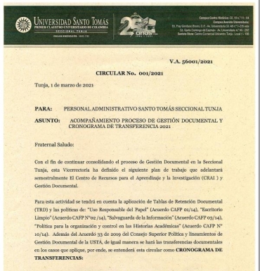 Con el fin de seguir consolidando el proceso de gestión documental de la Seccional Tunja, la Vicerrectoría ha definido el siguiente plan de trabajo que adelantará semestralmente en el Centro de Recursos para el Aprendizaje y la Investigación (CRAI) y gestión documental.